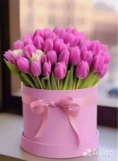 Цветочная коробка из тюльпанов